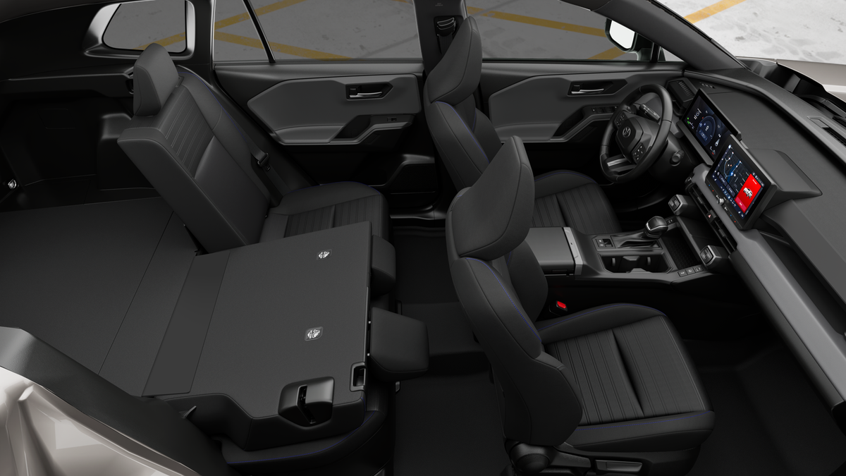 • 60/40 split reclining fold-flat rear seat with center armrest and cup holders