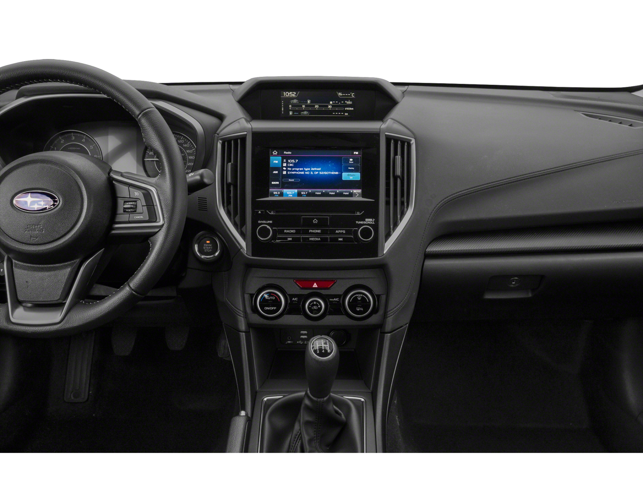 - Radio: Subaru STARLINK 6.5" Multimedia Plus System -inc: AM/FM stereo, HD Radio, single disc CD player w/MP3/WMA/CRR/RW file capability, multi-touch gesture high resolution display screen, voice activated controls, Bluetooth® audio streaming and hands-free phone connectivity, Bluetooth® hands-free SMS text messaging connectivity, iPod control capability, rear-vision camera display, SiriusXM All Access radio (4 months free trial/subscription required after), SiriusXM Travel Link (4 months free trial/subscription required after), smartphone integration: AHA, Android Auto, Apple CarPlay, Pandora, STARLINK cloud applications, 6 speakers, 3.5mm auxiliary input jack, dual USB A input charge ports, roof mounted antenna and audio/satellite connected services
